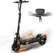 REIFEN&DÄMPFUNG: Der E Scooter verwendet 10-Zoll super große Vollgummireifen, die nicht aufgeblasen werden müssen. Seine Pannenfestigkeit und Verschleißfestigkeit wurden umfassend verbessert, und es gibt keine Notwendigkeit, sich um Fehler zu kümmern. Es hat auch eine gute Anti-Rutsch-Wirkung. Die Stoßdämpfungssysteme vorne und hinten sorgen für ein reibungsloses und komfortables Fahren auf der Straße.